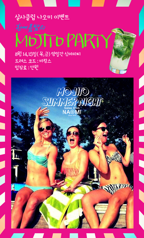 안녕하세요 나오미 입니다 ^^ 8월 14일 15일(목금) 이틀간 "모히또"심야파티 있어요 ^^