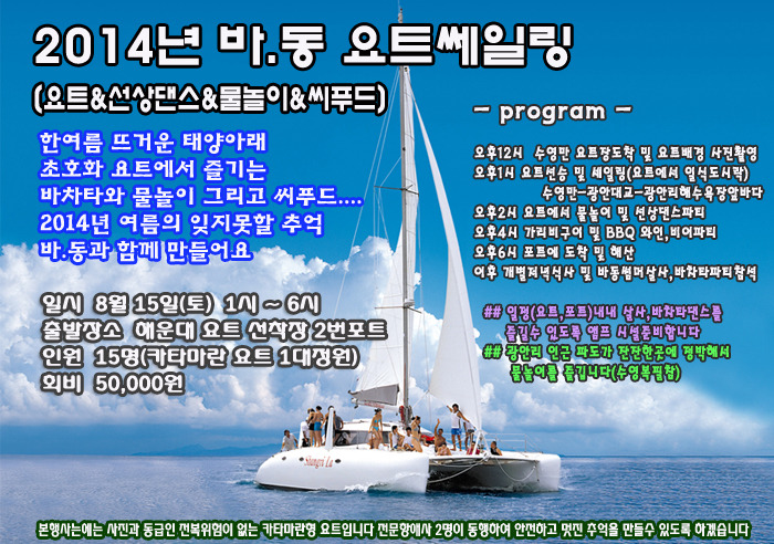 2014/8/15 바동 요트 쎄일링(요트&선상댄스&물놀이&씨푸드) 공지 및 예약