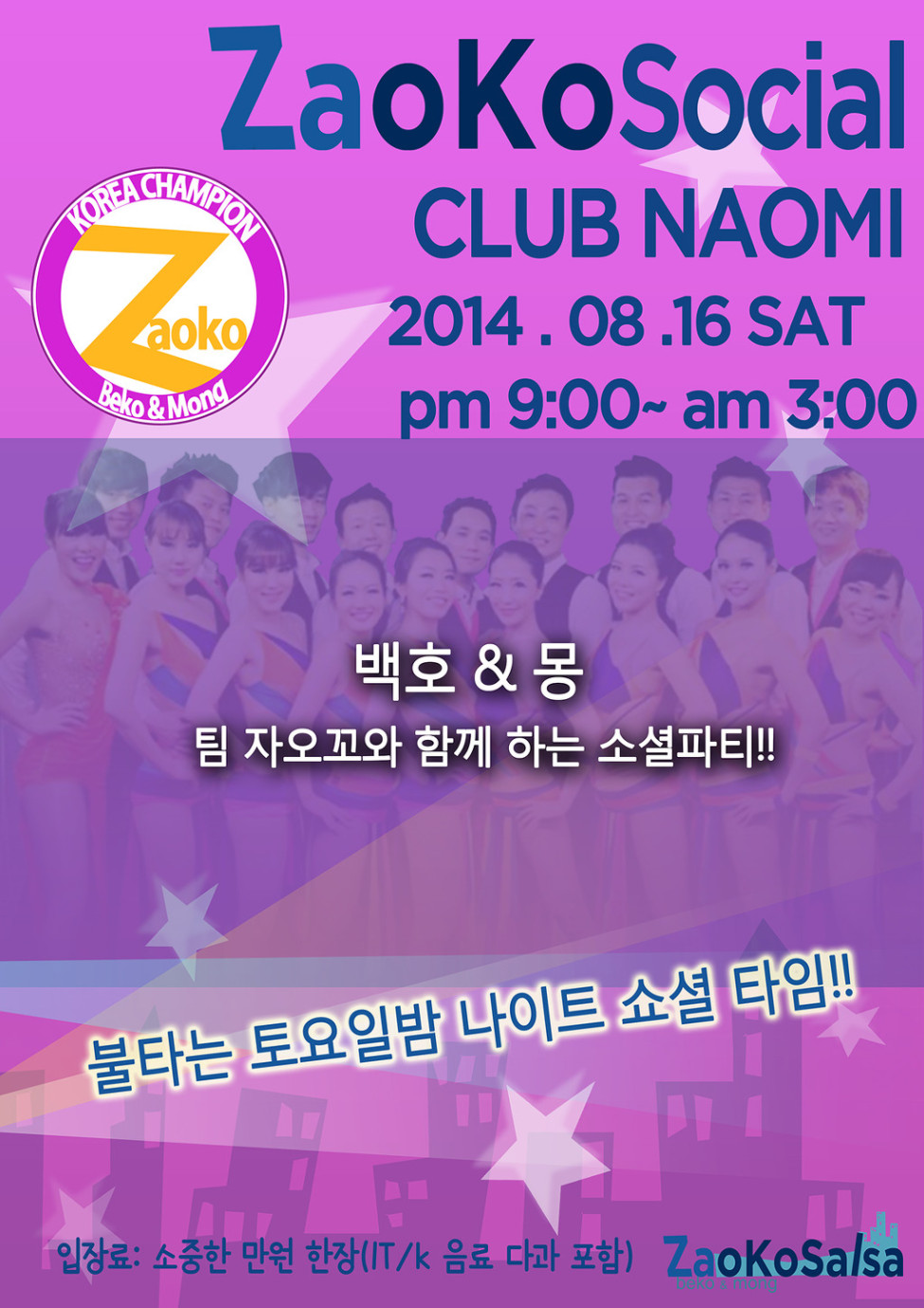 제7회 백호&몽의 "Zaoko" 쇼셜 파티 안내[2014년 8월 16일 토요일 9:00~][강남 살사 클럽 나오미]