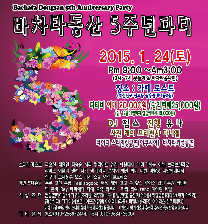 전국 분류 1월 24일(토) 바차타동산 5주년 파티~ 작성자 정보 Youna(바차타동산)쪽지보내기 메일보내기 자기소개 아이디로 검색 전체게시물쪽지보내기 메일보내기 자기소개 아이디로 검색 전체게시물 작성 작성일 2014.12.13 01:05 컨텐츠 정보 2,341 조회 0 추천 목록 답글 본문 예매 합니다 0 추천 관련자료 링크 http://cafe.daum.net/_c21_/bbs_read?grpid=19pwa&mgrpid=&fldid=J4uU&content=P&contentval=000WUzzzzzzzzzzzzzzzzzzzzzzzzz&page=1&prev_page=0&firstbbsdepth=&lastbbsdepth=zzzzzzzzzzzzzzzzzzzzzzzzzzzzzz&listnum=20 225 회 연결 이전 Since 2001.부산초보라틴댄스방! 2015.1.10. 14th생일파티 작성일 2014.12.13 18:14 다음 2014년 12월 21일(일) 응급실♥요미 결혼합니다! (피로연 - 더살사Bar) 게스트수정(1) 작성일 2014.12.12 20:00 댓글 0 등록된 댓글이 없습니다. 로그인한 회원만 댓글 등록이 가능합니다. 목록 답글