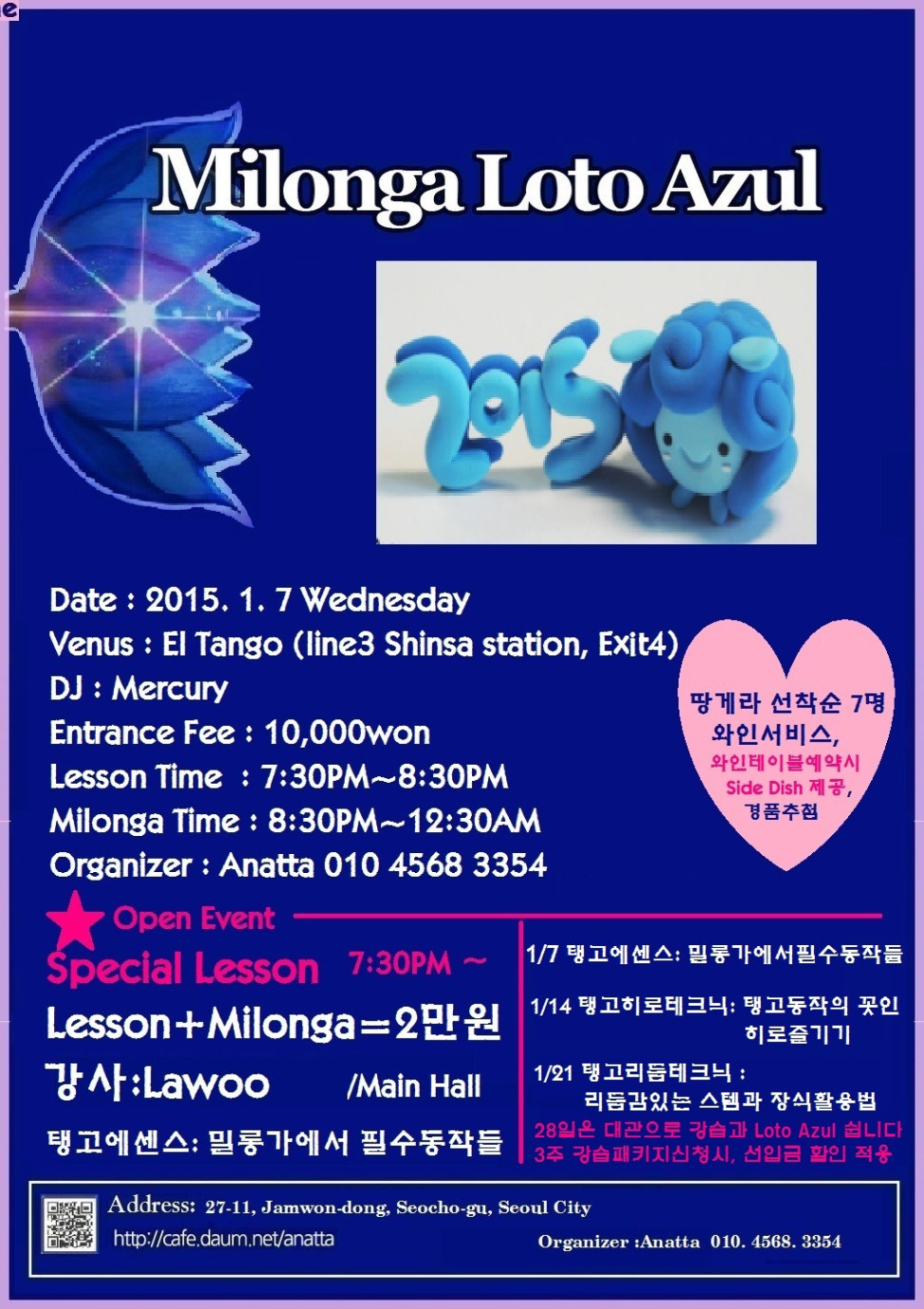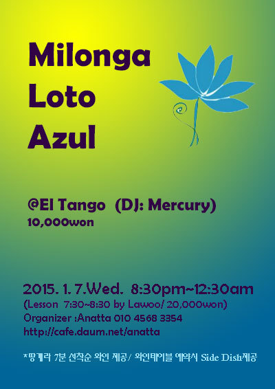서울 분류 Open!!수요밀롱가Milonga Loto Azul@엘땅고~2015년1월7일부터 매주수요일(DJ:머큐리님)스페셜탱고레슨(라우샘)/땅게라선착순입장7명와인서비스/새해경품이벤트 작성자 정보 아나타쪽지보내기 메일보내기 자기소개 아이디로 검색 전체게시물쪽지보내기 메일보내기 자기소개 아이디로 검색 전체게시물 작성 작성일 2015.01.07 01:22 컨텐츠 정보 2,541 조회 0 추천 목록 답글 본문 * El Tango Studio Lesson8시 탱고 중급(피쉬&땅조)9시 탱고 초중급(피쉬&후안) / --> 강습 전후 밀롱가 입장시 할인 ^^ 0 추천 관련자료 링크 http://cafe.daum.net/_c21_/bbs_read?grpid=19pwa&mgrpid=&fldid=J4uN&content=P&contentval=000iHzzzzzzzzzzzzzzzzzzzzzzzzz&page=1&prev_page=0&firstbbsdepth=&lastbbsdepth=zzzzzzzzzzzzzzzzzzzzzzzzzzzzzz&listnum=20 116 회 연결 이전 2015. 1.7 (수) 아우라 살사 - " 새해 , 오래된 친구들 " 데이 .(2탄) 작성일 2015.01.07 02:36 다음 [클럽맘보] 2015년 1월08일부터 목요소셜 ★DJ 자유인★ 강남살사 & 맘보마니아 & sam과 친구들이 함께합니다!!! 작성일 2015.01.06 22:42 댓글 0 등록된 댓글이 없습니다. 로그인한 회원만 댓글 등록이 가능합니다. 목록 답글