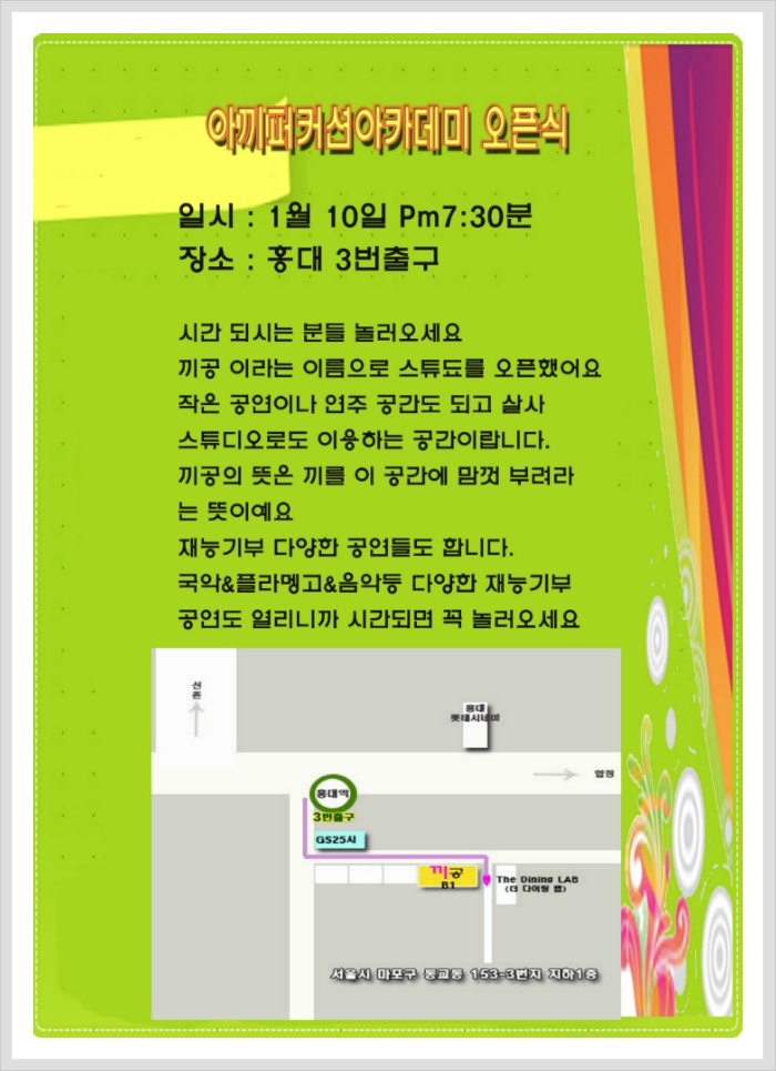 서울 분류 아끼퍼커션 아카데미 스튜디오 오픈식에 초대합니다. 작성자 정보 Mini쪽지보내기 메일보내기 자기소개 아이디로 검색 전체게시물쪽지보내기 메일보내기 자기소개 아이디로 검색 전체게시물 작성 작성일 2015.01.08 16:37 컨텐츠 정보 2,138 조회 0 추천 목록 답글 본문 0 추천 관련자료 링크 http://cafe.daum.net/_c21_/bbs_read?grpid=19pwa&mgrpid=&fldid=J4uN&content=P&contentval=000iLzzzzzzzzzzzzzzzzzzzzzzzzz&page=1&prev_page=0&firstbbsdepth=&lastbbsdepth=zzzzzzzzzzzzzzzzzzzzzzzzzzzzzz&listnum=20 114 회 연결 이전 부산 살사홀릭 스마트 시샵 굿바이 정모 작성일 2015.01.08 16:22 다음 [1월 24일] 바차타동산 5주년 빅파티 coming soon 작성일 2015.01.08 13:19 댓글 0 등록된 댓글이 없습니다. 로그인한 회원만 댓글 등록이 가능합니다. 목록 답글