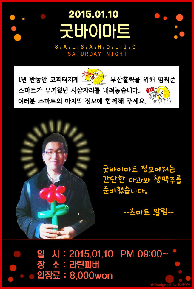 부산살사홀릭의 시샵으로 1년반동안 수고해부신 스마트 시샵님이 이제 시샵직을 내려놓고 일반 살사인으로 돌아갑니다~