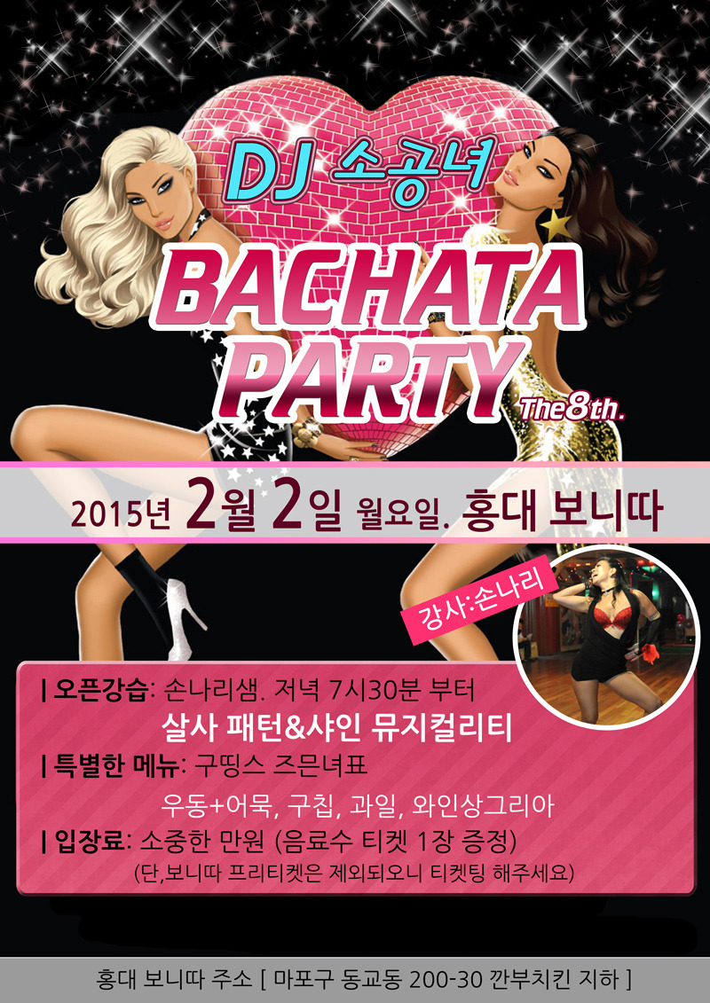 [홍대보니따] ♡2015년2월2일 DJ소공녀 바차타 파티에 초대 합니다♡<오픈강습7시30분부터 손나리의 살사 패턴&샤인 뮤지컬리티>(올레벨 남녀공통)