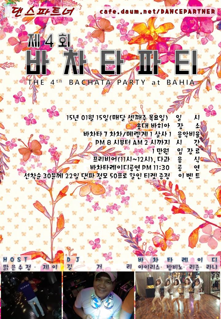 [파티]제4회 댄파 바차타 파티 01.15(목, 매달 셋째주 목요일) @ 홍대 바히아, DJ 길거리, 바차타7 차/메1 살사1, 바차타레이디공연