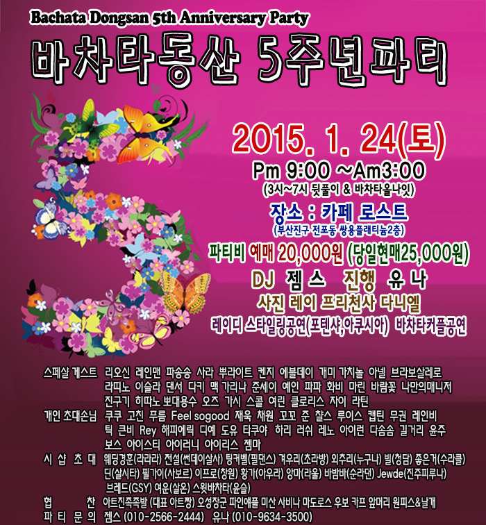 전국 분류 바차타동산 창립 5주년 기념파티(1월24일) 작성자 정보 젬스쪽지보내기 메일보내기 자기소개 아이디로 검색 전체게시물쪽지보내기 메일보내기 자기소개 아이디로 검색 전체게시물 작성 작성일 2015.01.16 12:56 컨텐츠 정보 2,128 조회 0 추천 목록 답글 본문 입금계좌 SC은행(최정윤) 520-20-228571 예약방법(댓글) 순번. 닉네임 / 남녀구분 / 지역(동호회) / 입금자명(금액) / 한마디~~ 0 추천 관련자료 링크 http://cafe.daum.net/_c21_/bbs_read?grpid=19pwa&mgrpid=&fldid=J4uU&content=P&contentval=000Y4zzzzzzzzzzzzzzzzzzzzzzzzz&page=1&prev_page=0&firstbbsdepth=&lastbbsdepth=zzzzzzzzzzzzzzzzzzzzzzzzzzzzzz&listnum=20 220 회 연결 이전 2월 21일 SAT. 파티최강자 누구나 MAD PARTY~ 작성일 2015.01.16 12:57 다음 매달 첫번째 토요일(2월7일부터) DJ The Dancer 의 살사 소셜 데이~! 작성일 2015.01.16 02:32 댓글 0 등록된 댓글이 없습니다. 로그인한 회원만 댓글 등록이 가능합니다. 목록 답글