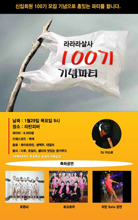라라라살사 카페 신청글 : 라라사살사댄스 동호회 100기 기념파티