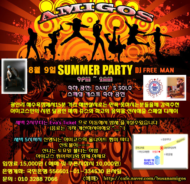동호회 출범 1년기념 8월 9일 부산 아미고스 썸머파티 올나잇 파티 놀러오세요 ^__^