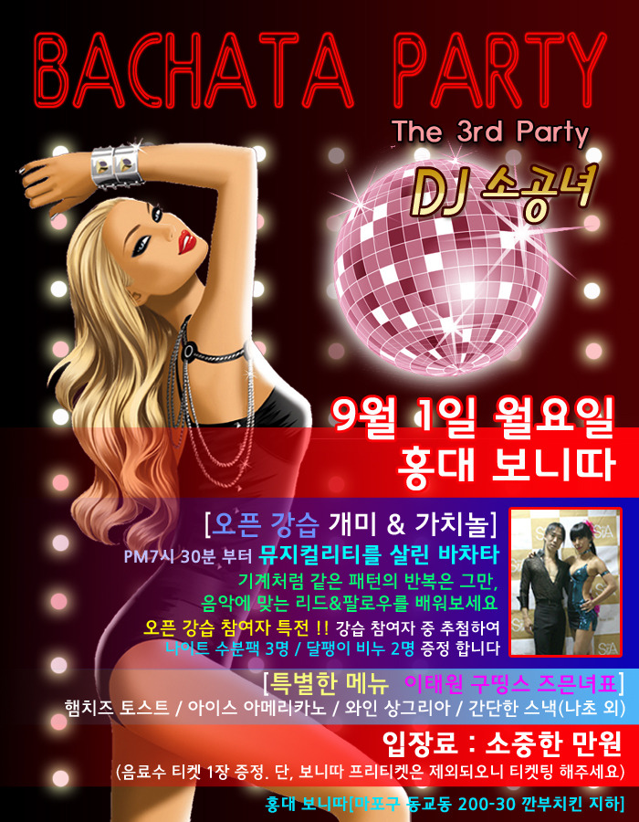 서울 분류 [홍대보니따]9월1일(월요일) DJ소공녀 바차타 파티에 초대합니다.7시30분부터 개미&가치놀의 오픈강습<뮤지컬리티을 살린 바차타> 작성자 정보 소공녀♥9월1일홍대보니따바차…쪽지보내기 메일보내기 자기소개 아이디로 검색 전체게시물쪽지보내기 메일보내기 자기소개 아이디로 검색 전체게시물 작성 작성일 2014.08.14 00:10 컨텐츠 정보 4,364 조회 3 댓글 0 추천 목록 답글 본문 0 추천 관련자료 링크 http://cafe.daum.net/_c21_/bbs_read?grpid=19pwa&mgrpid=&fldid=J4uN&content=P&contentval=000apzzzzzzzzzzzzzzzzzzzzzzzzz&page=1&prev_page=0&firstbbsdepth=&lastbbsdepth=zzzzzzzzzzzzzzzzzzzzzzzzzzzzzz&listnum=20 301 회 연결 이전 안녕하세요 나오미 입니다 ^^ 8월 14일 15일(목금) 이틀간 "모히또"심야파티 있어요 ^^ 작성일 2014.08.14 04:10 다음 < 테리 & 세실 > 10월 드뎌 한국에 온다~!! 가장 춤 추고 싶은 댄서~ 가장 보고 싶은 댄서~ 작성일 2014.08.13 20:10 댓글 3 독거진(서울)님의 댓글 소공녀♥9월1일홍대보니따바차…쪽지보내기 메일보내기 자기소개 아이디로 검색 전체게시물쪽지보내기 메일보내기 자기소개 아이디로 검색 전체게시물 작성일 2014.08.14 00:10 특별한메뉴가 점점 점 많아진다 -0- ㅋㅋㅋ 특별한메뉴가 점점 점 많아진다 -0- ㅋㅋㅋ 소공녀♥9월1일홍대보니따바차타파티님의 댓글 소공녀♥9월1일홍대보니따바차…쪽지보내기 메일보내기 자기소개 아이디로 검색 전체게시물쪽지보내기 메일보내기 자기소개 아이디로 검색 전체게시물 작성일 2014.08.14 00:10 ^__________^ 놀러 올거지? ㅎㅎㅎ ^__________^ 놀러 올거지? ㅎㅎㅎ 졍이님의 댓글 소공녀♥9월1일홍대보니따바차…쪽지보내기 메일보내기 자기소개 아이디로 검색 전체게시물쪽지보내기 메일보내기 자기소개 아이디로 검색 전체게시물 작성일 2014.08.14 00:10 우와~~드뎌....한달을 기다린 소공녀언니의 바차타파뤼~~꼭 참석요~ 우와~~드뎌....한달을 기다린 소공녀언니의 바차타파뤼~~꼭 참석요~ 로그인한 회원만 댓글 등록이 가능합니다. 목록 답글