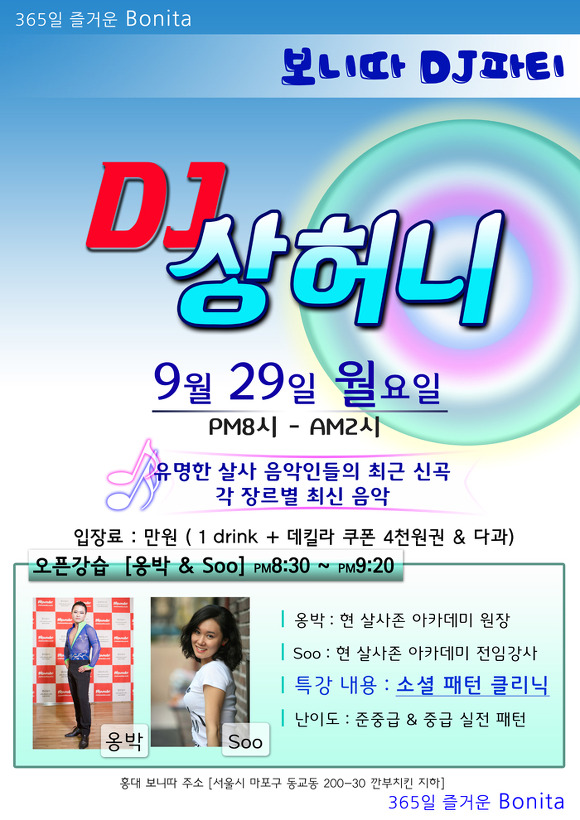 9월29일 (매월 마지막주)월요일은 DJ 상허니와 함께 하는 보니따 파티!!!!