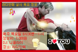 정모 날짜: 9월 25일 목요일 정모 시간: 8시30분 ~11시 장소: 일산 살사&탱고 라디안떼 입장료: 7,000원 뒷풀이: 11시부터 먹거리 호프에서 진행됩니다, 뒷풀이는 원하시는분만 참여 가능합니다.