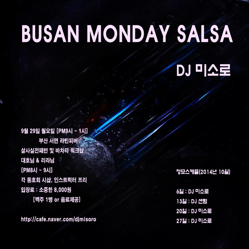 2014년 그리고, 9월 29일 월요일은 부산 먼데이살사 정모하는 날입니다.