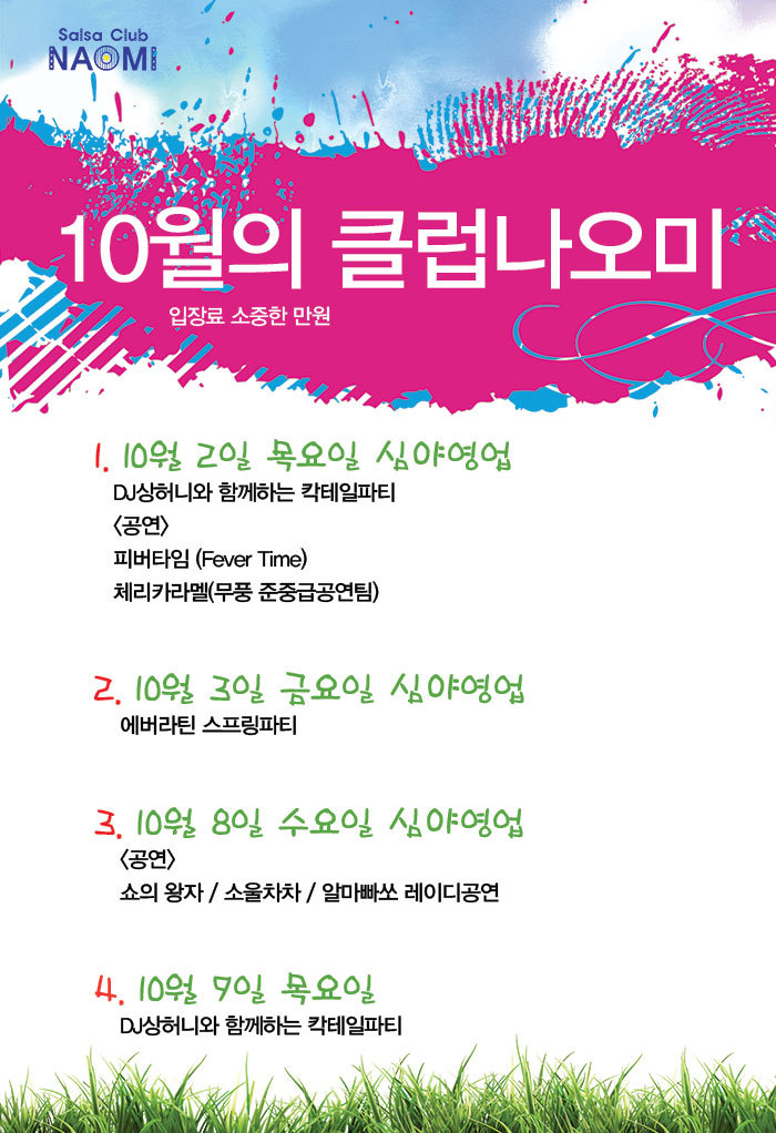 안녕하세요 나오미 입니다 10월 2일 목요일 10월 3일 금요일 이틀 심야파티 있어요 ^^ 함께해용