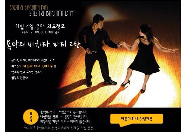 서울 분류 스카이라틴 바차타파티! 홍턴으로 놀러오세요! 작성자 정보 Vanessa쪽지보내기 메일보내기 자기소개 아이디로 검색 전체게시물쪽지보내기 메일보내기 자기소개 아이디로 검색 전체게시물 작성 작성일 2014.11.03 17:14 컨텐츠 정보 3,586 조회 0 추천 목록 답글 본문 11월 4일 화요일, 스카이라틴에서 바차타파티를 준비했습니다!바차타 좋아하는 분! 데낄라 좋아하는 분! 모두 모여요~~! 가을엔 역시 바차타!!! 0 추천 관련자료 링크 http://cafe.daum.net/_c21_/bbs_read?grpid=19pwa&mgrpid=&fldid=J4uN&content=P&contentval=000eqzzzzzzzzzzzzzzzzzzzzzzzzz&page=1&prev_page=0&firstbbsdepth=&lastbbsdepth=zzzzzzzzzzzzzzzzzzzzzzzzzzzzzz&listnum=20 176 회 연결 이전 11/15(토) 17th Salsa & Bachata Big Party 작성일 2014.11.03 18:40 다음 제44회 DJ헤이즐&DJ린넨과 함께하는 Crazy Salsa(Crazy Monday) 파티에 여러분을 초대합니다.[11/3일 월요일][홍대 턴] 작성일 2014.11.03 16:06 댓글 0 등록된 댓글이 없습니다. 로그인한 회원만 댓글 등록이 가능합니다. 목록 답글