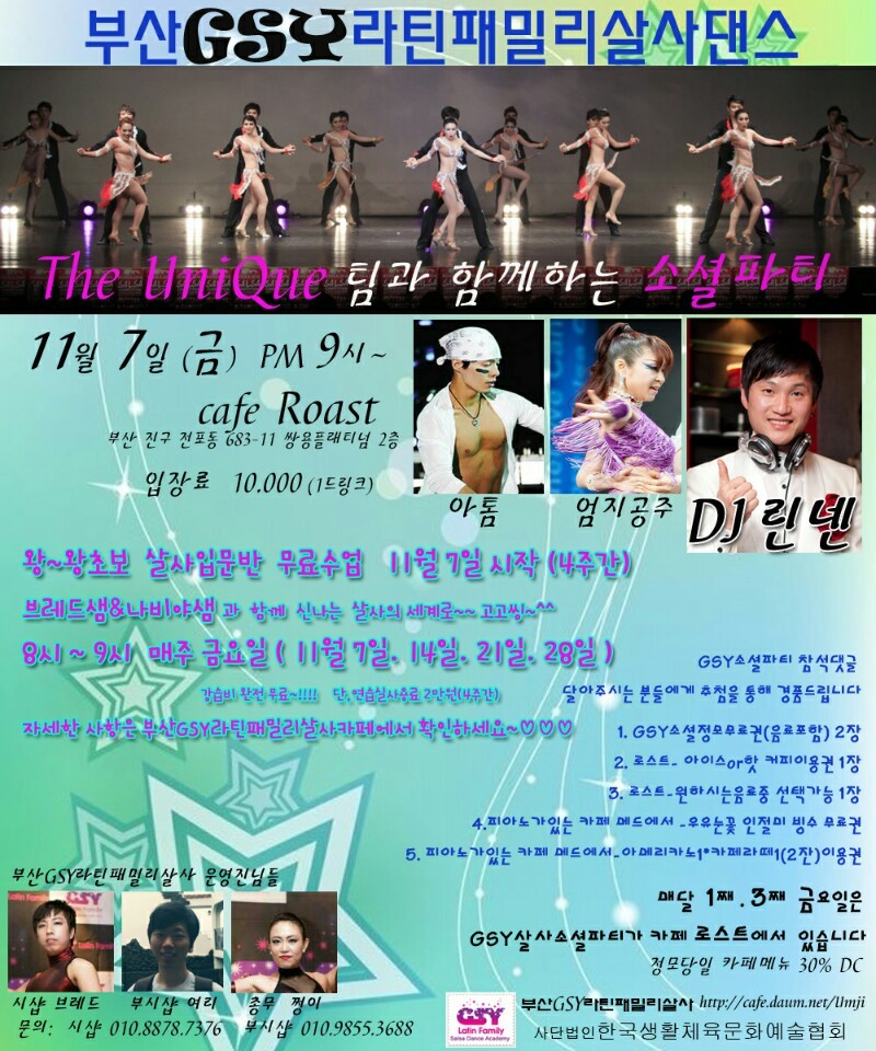 11월7일 첫째주 금요일 - 아톰&엄지의 더 유니크팀과 함께하는 소셜파티[부산GSY라틴패밀리살사] in 로스트bar.