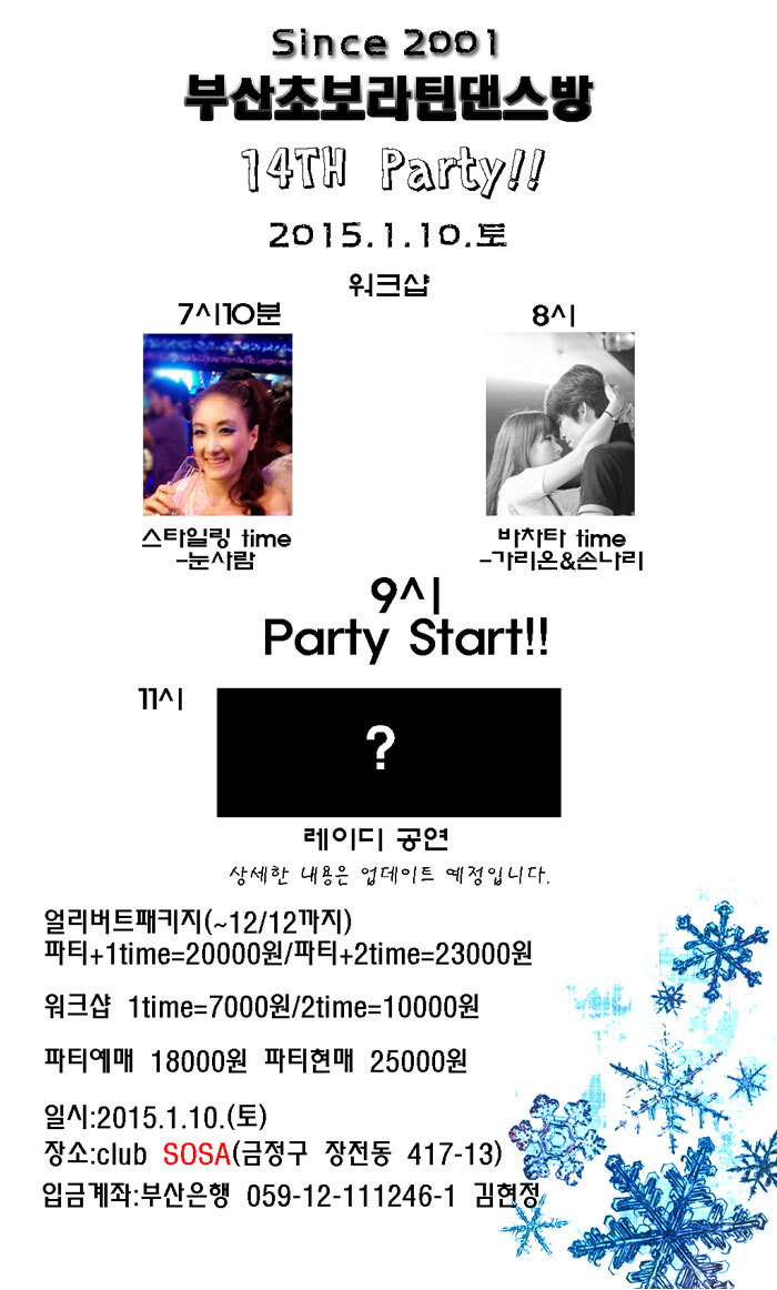 전국 분류 Since 2001.부산초보라틴댄스방! 2015.1.10. 14th생일파티1. 작성자 정보 겨우리[부산]♥부초방쪽지보내기 메일보내기 자기소개 아이디로 검색 전체게시물쪽지보내기 메일보내기 자기소개 아이디로 검색 전체게시물 작성 작성일 2014.11.19 15:51 컨텐츠 정보 3,139 조회 0 추천 목록 답글 본문 신청하러가기☞ http://cafe.daum.net/pusanchobolatin 부초방14th신청방으로 고고~~!!! 0 추천 관련자료 링크 http://cafe.daum.net/_c21_/bbs_read?grpid=19pwa&mgrpid=&fldid=J4uU&content=P&contentval=000VSzzzzzzzzzzzzzzzzzzzzzzzzz&page=1&prev_page=0&firstbbsdepth=&lastbbsdepth=zzzzzzzzzzzzzzzzzzzzzzzzzzzzzz&listnum=20 549 회 연결 이전 2014년 12월 13일, "라패인의 밤"_2번째 포스터 작성일 2014.11.19 15:58 다음 [웨스턴스윙]100일 기념 Salsa Party(11/20) & WCS Party(11/22) 작성일 2014.11.19 15:39 댓글 0 등록된 댓글이 없습니다. 로그인한 회원만 댓글 등록이 가능합니다. 목록 답글