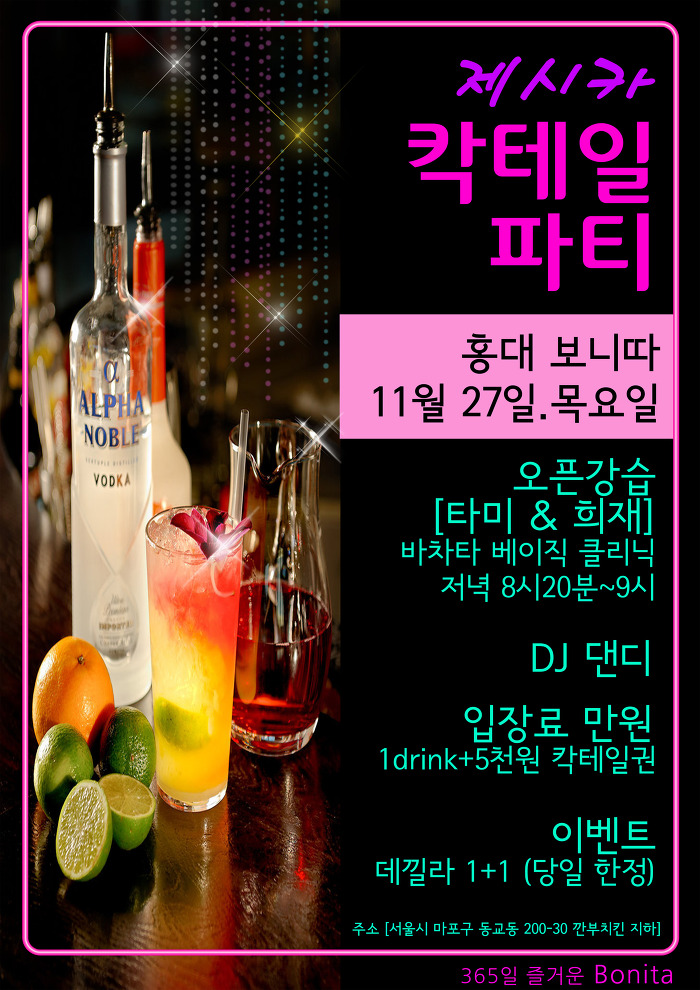 서울 분류 Hot!Hot! 따뜻한 겨울(11/27, 목) 보니따 제시카 칵테일 파티^ㅡ^ 작성자 정보 클럽보니따쪽지보내기 메일보내기 자기소개 아이디로 검색 전체게시물쪽지보내기 메일보내기 자기소개 아이디로 검색 전체게시물 작성 작성일 2014.11.24 22:28 컨텐츠 정보 2,777 조회 0 추천 목록 답글 본문 11월27일 목요일 보니따 칵테일 파티 놀러오셔서맛난 칵테일 마시고 몸이 뜨끈뜨근한 겨울 되세요??!! ^^^^^^^^^^^^^^^^11월 27일 목요일에 만나요^ㅡ^ 0 추천 관련자료 링크 http://cafe.daum.net/_c21_/bbs_read?grpid=19pwa&mgrpid=&fldid=J4uN&content=P&contentval=000fpzzzzzzzzzzzzzzzzzzzzzzzzz&page=1&prev_page=0&firstbbsdepth=&lastbbsdepth=zzzzzzzzzzzzzzzzzzzzzzzzzzzzzz&listnum=20 436 회 연결 이전 블랙칸 아카데미 연말파티 12월5일(금) -강남턴바- 작성일 2014.11.25 00:38 다음 2014년 12월 13일(토) - 뉴라티노 클럽 오픈 1주년 파티..^^ 작성일 2014.11.24 17:59 댓글 0 등록된 댓글이 없습니다. 로그인한 회원만 댓글 등록이 가능합니다. 목록 답글