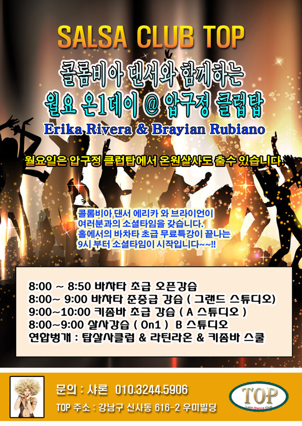 서울 분류 압구정 9월 22일 살사클럽 TOP월요소셜데이- 콜롬비아댄서의 바차타 특강 & 살사 소셜타임 & 무인도쌤 라인댄스특강 작성자 정보 샤론쪽지보내기 메일보내기 자기소개 아이디로 검색 전체게시물쪽지보내기 메일보내기 자기소개 아이디로 검색 전체게시물 작성 작성일 2014.09.16 00:58 컨텐츠 정보 2,527 조회 0 추천 목록 답글 본문 압구정 살사클럽 TOP 월요 소셜데이- 콜롬비아댄서의 바차타 특강 & 살사 소셜타임 & 무인도쌤 라인댄스 특강 ** 8:00 ~ 8:50 바차타 초급 무료특강~~!! ** 0 추천 관련자료 링크 http://cafe.daum.net/_c21_/bbs_read?grpid=19pwa&mgrpid=&fldid=J4uN&content=P&contentval=000cSzzzzzzzzzzzzzzzzzzzzzzzzz&page=1&prev_page=0&firstbbsdepth=&lastbbsdepth=zzzzzzzzzzzzzzzzzzzzzzzzzzzzzz&listnum=20 250 회 연결 이전 바차타를 사랑하는 사람들 !! ~ 수요일은 바차타 데이에 초대합니다 ~ ( 리버 라틴바 ). 작성일 2014.09.16 10:29 다음 9/21일 보니따 라틴선데이......감당 할수있는가? <Dance-UFC> 작성일 2014.09.15 23:08 댓글 0 등록된 댓글이 없습니다. 로그인한 회원만 댓글 등록이 가능합니다. 목록 답글
