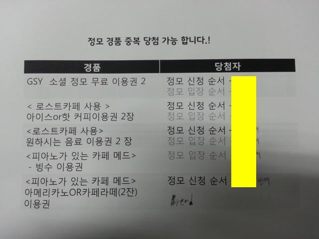 아래는 이번주 경품 순서입니다 !!