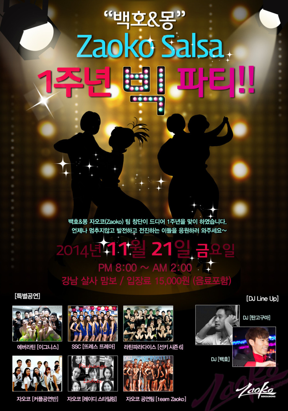 백호&몽 자오코(Zaoko) 팀 창단 1주년 기념 빅!빅!빅! 파티 안내[2014년 11월 21일 금요일 Pm8:00~Am2:00][강남 맘보 살사 클럽]