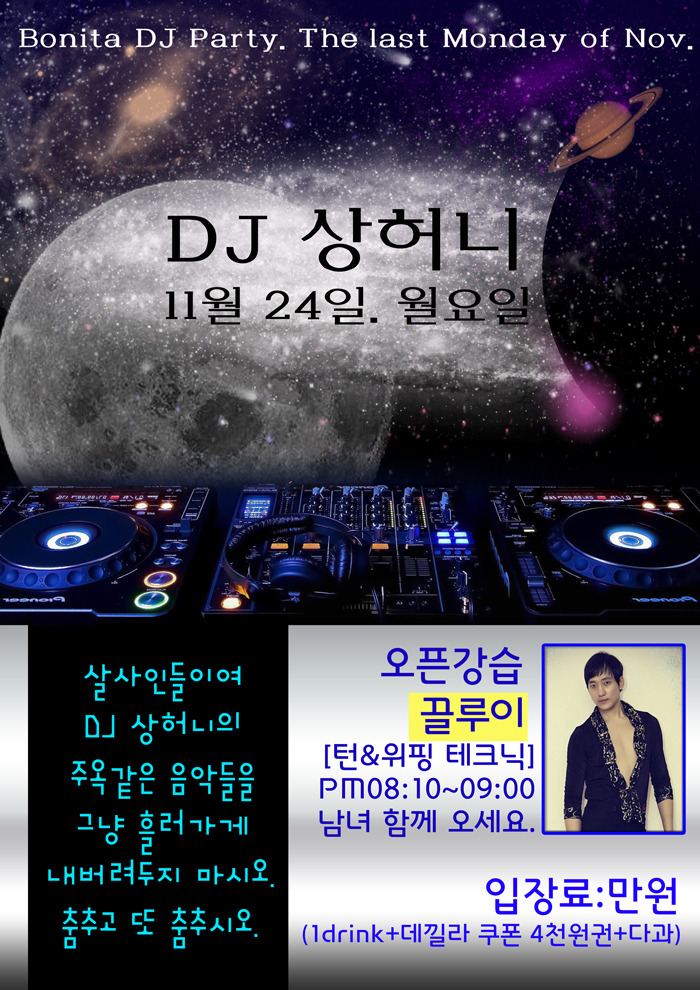 보니따 DJ파티 매월 마지막 월요일은 대한민국 대표 DJ 상허니 ~!