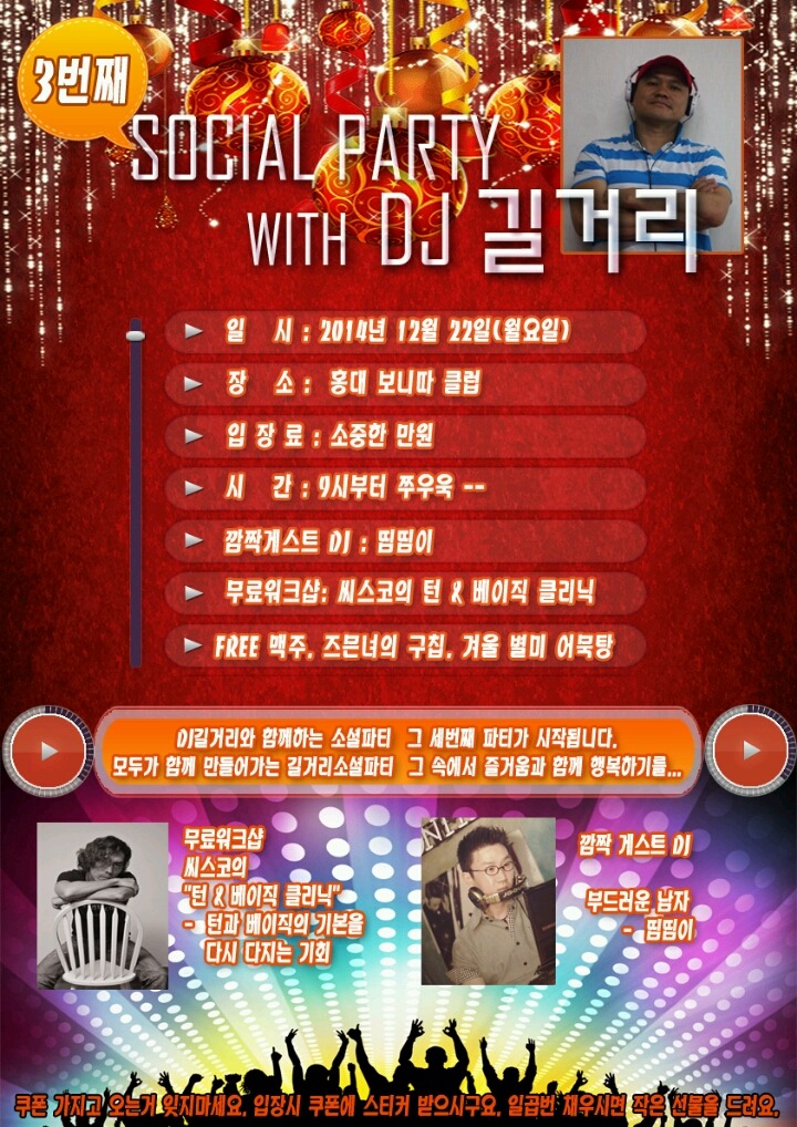12월 22일 디제이 길거리님의 파티가 세번째시간을 갖습니다~~