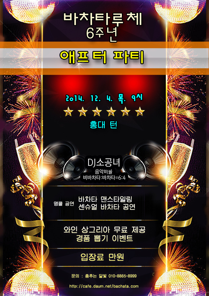 서울 분류 [바차타루체 제308회 정모 "6주년 애프터파티"] - 2014. 12. 4 (목)/늦은9시부터/홍대 턴/DJ소공녀/입장료:만원/와인상그리아/앵콜공연/경품 뽑기/뒷풀이:사쿠라 작성자 정보 춤추는 달빛(서울/바차타루체…쪽지보내기 메일보내기 자기소개 아이디로 검색 전체게시물쪽지보내기 메일보내기 자기소개 아이디로 검색 전체게시물 작성 작성일 2014.12.03 16:17 컨텐츠 정보 2,655 조회 0 추천 목록 답글 본문 http://cafe.daum.net/bachata.com 0 추천 관련자료 링크 http://cafe.daum.net/_c21_/bbs_read?grpid=19pwa&mgrpid=&fldid=J4uN&content=P&contentval=000gIzzzzzzzzzzzzzzzzzzzzzzzzz&page=1&prev_page=0&firstbbsdepth=&lastbbsdepth=zzzzzzzzzzzzzzzzzzzzzzzzzzzzzz&listnum=20 245 회 연결 이전 12월 18일 살사로 연말파티에 놀러오세요~♡ 작성일 2014.12.03 16:59 다음 12월 22일 디제이 길거리님의 파티가 세번째시간을 갖습니다~~ 작성일 2014.12.03 13:11 댓글 0 등록된 댓글이 없습니다. 로그인한 회원만 댓글 등록이 가능합니다. 목록 답글