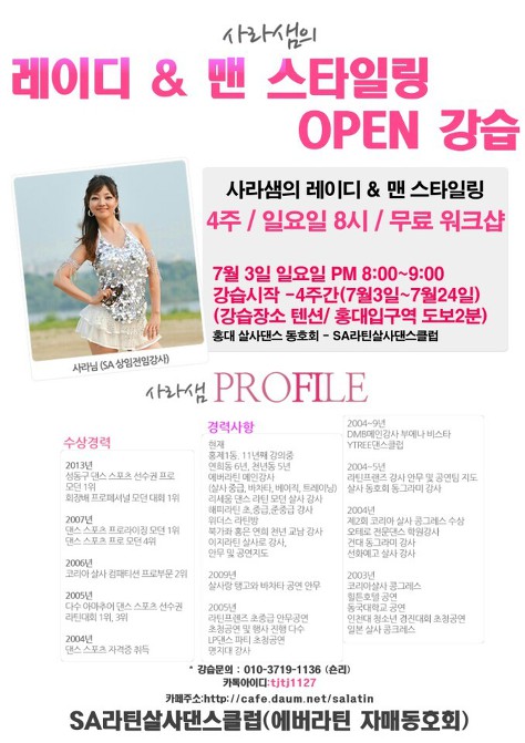 7월24일 일요일 홍대텐션 사라쌤과 함께하는 무료 스타일링 워크샵!! 레이디프리