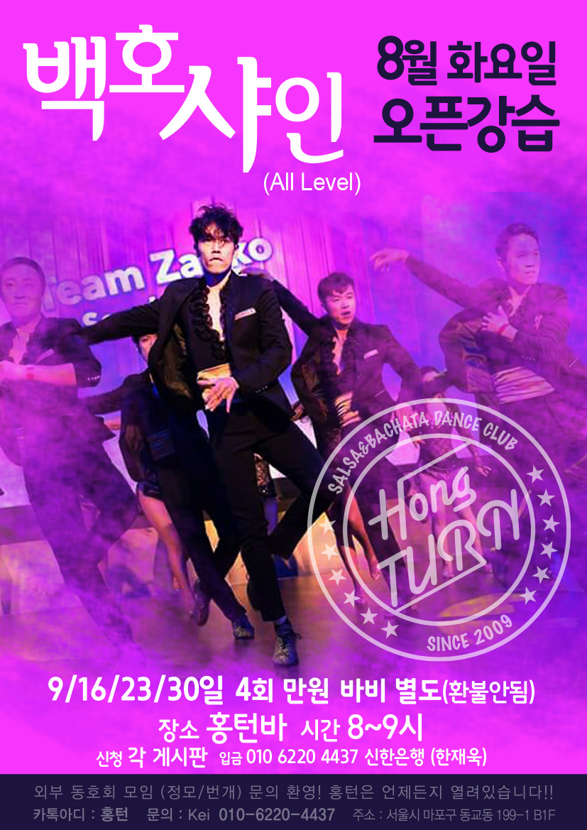 백호▶화요 살사 샤인◀8월 9일(화) 시작●오픈강습(바비별도-환불안됨,레슨비 4주-만원)