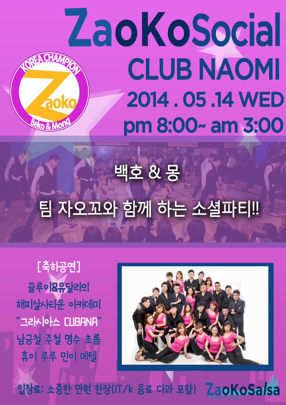 제5회 백호&몽의 "Zaoko" 쇼셜 파티 안내[2014년 5월 14일 수요일][강남 살사 클럽 나오미]