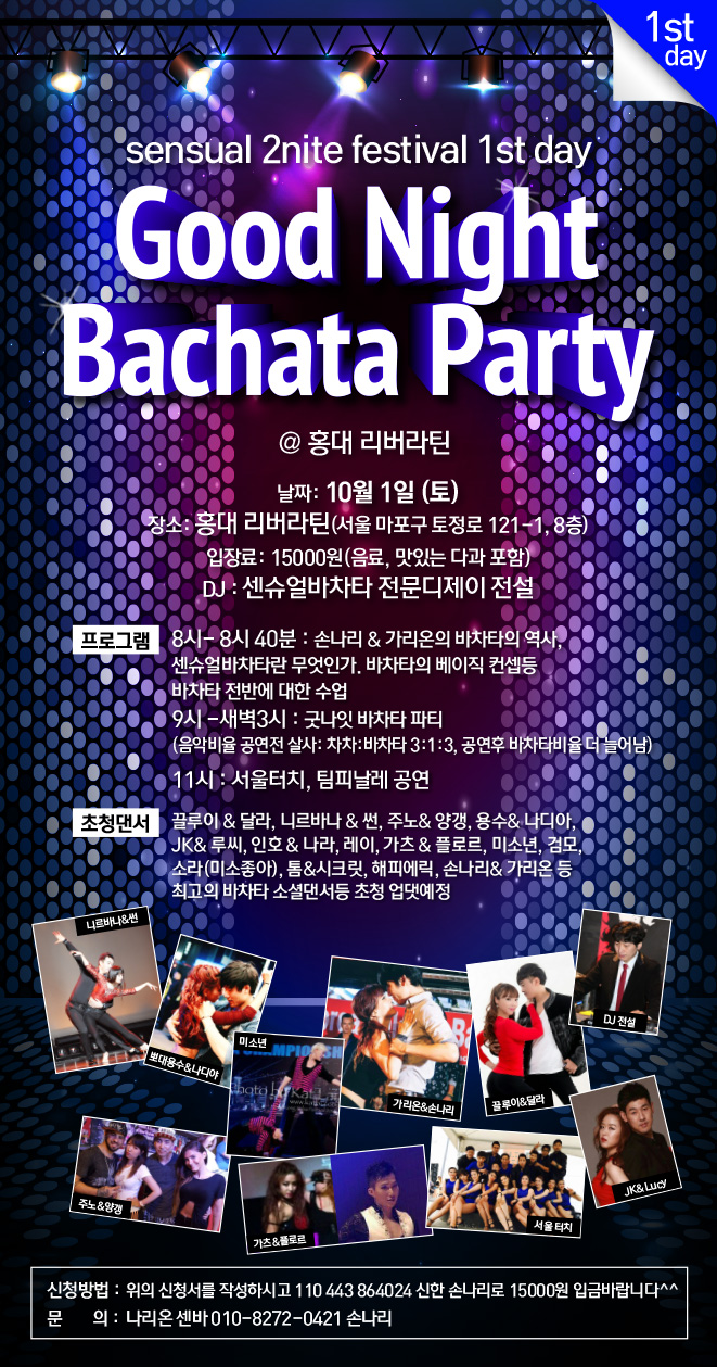 10월 1일 센슈얼투나잇페스티발 첫날파티@홍대 리버라틴! 바차타최강댄서들이 여러분을 기다립니다^^ 현재 예약자+초청댄서 100명넘어서 16분만 신청더받아요^^