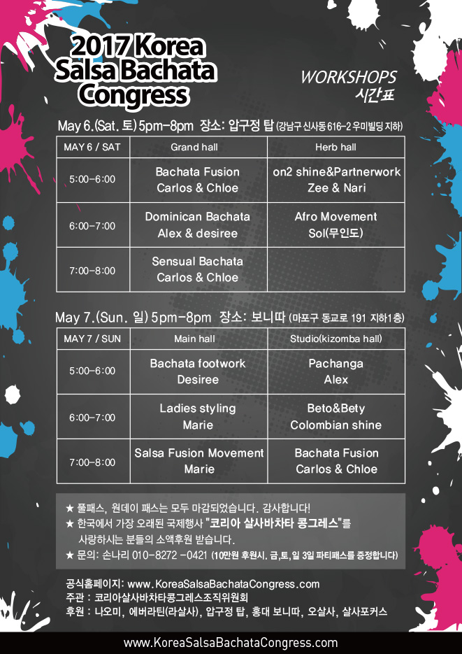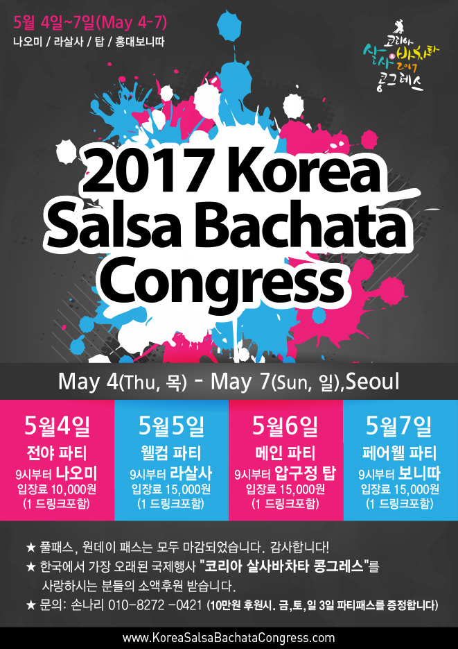 한국에서 가장 오랜 역사를 자랑하는 콩그레스를 좀더 응원해주시고 싶으신분들. 내가좋아하는 외국 게스트 댄서들 밥한끼 사주고 싶으신분들. 열심히 일하는 스탭들에게 도시락을 제공해주고 싶으신분들께 소액 후원 받고 있답니다^^