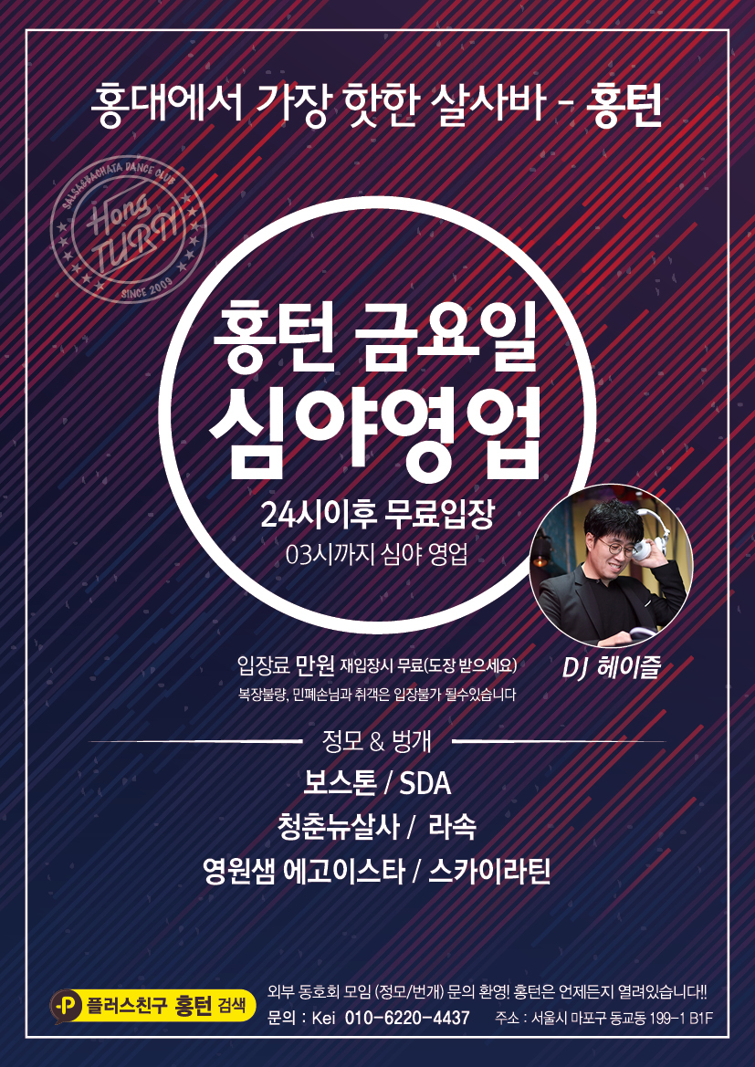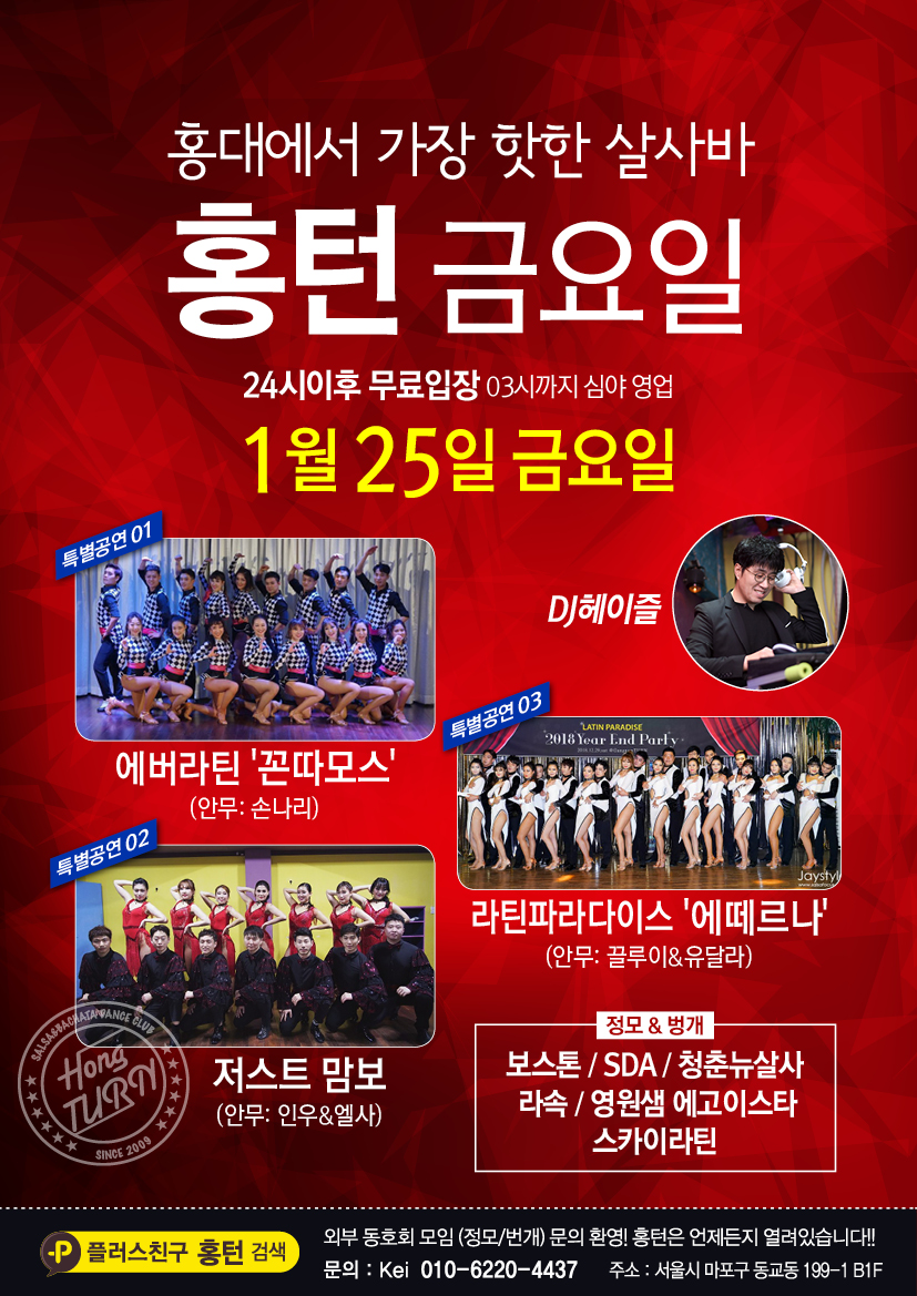♡행복한 홍대턴♡1월24일 이후 주간&월간 스케줄 안내(홍턴의 주말은 목요일 부터~/수,토 반값데이/금 24시이후 무료입장)