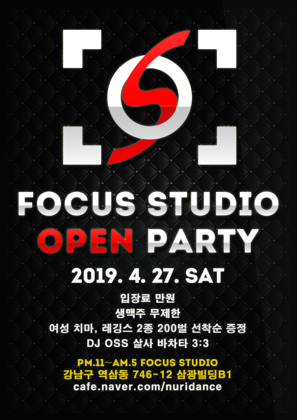 이번주 토요일(2019년 4월 27일) 포커스 스튜디오 오픈파티 합니다~