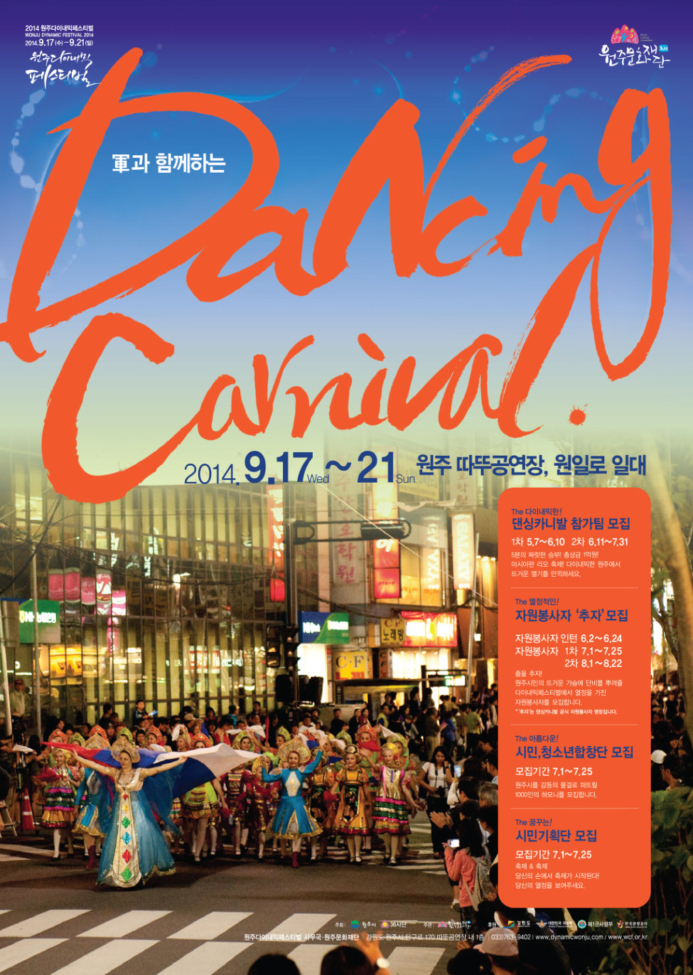2014년 9월17일부터 21일까지 원주에서 대한민국 최대의 춤의 축제가 펼쳐집니다.