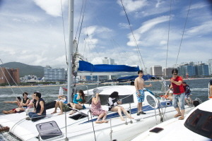 우리가 승선할 요트는 카타말란으로 정원 15명이 탈수있는 우리나라에 몇대없는 카타마란(쌍발형 요트)입니다 작년까진 2대로 했었는데 이번엔 안전 및 관리를 위해 한대만 출항하기로 했습니다